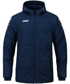 Wasserabweisendes Obermaterial, wärmeisolierende Wattierung und weiches Fleece an der Innenseite machen die JAKO Coachjacke Team zur optimalen Ausstattung bei kühleren Temperaturen. Bei widrigem Wetter kannst Du die im Kragen intergierte Kapuze tragen. Des Weiteren schützen integrierte Ripp-Bündchen in den Ärmeln, dem Kordelzug und den Stoppern sowie an der Kapuze vor dem Eindringen von Wind und Regen. So garantiert die Jacke optimalen Tragekonform.